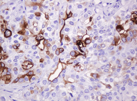 - IHC of paraffin-embedded Carcinoma of Human lung tissue using anti-MUC1 mouse monoclonal antibody.