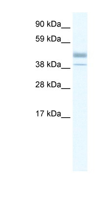 - Western blot analysis using Anti-ESRRB antibody detects protein at predicted molecular weight using Fetal Kidney Tissue as a positive control. Tissue/Lysate Concentration: 0.5ug/ml Antibody Concentration: 1.0ug/ml