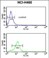 - ESRRB Antibody (Center) (GTX80586) flow cytometric analysis of NCI-H460 cells (bottom histogram) compared to a negative control cell (top histogram).FITC-conjμgated goat-anti-rabbit secondary antibodies were used for the analysis.