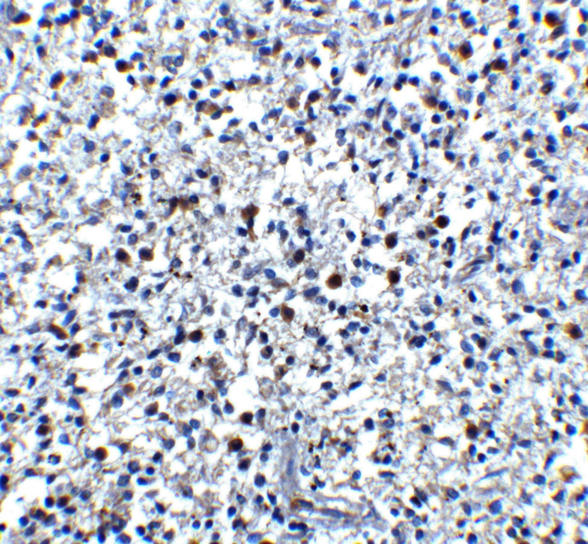 - Immunohistochemistry of Cathelicidin in human spleen tissue with Cathelicidin Polyclonal Antibody (Product # PA5-20513) at 5 µg/mL.