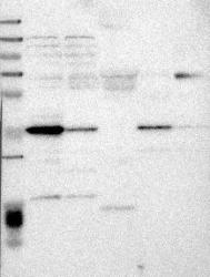 - Western blot analysis of antibody specificity using a routine panel composed of IgG/HSA-depleted human plasma and protein lysates from selected human tissues and cell lines.