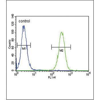 - INHBA Antibody (N-term) (Cat. #OAAB07370) flow cytometric analysis of CEM cells (right histogram) compared to a negative control cell (left histogram).FITC-conjugated goat-anti-rabbit secondary antibodies were used for the analysis.