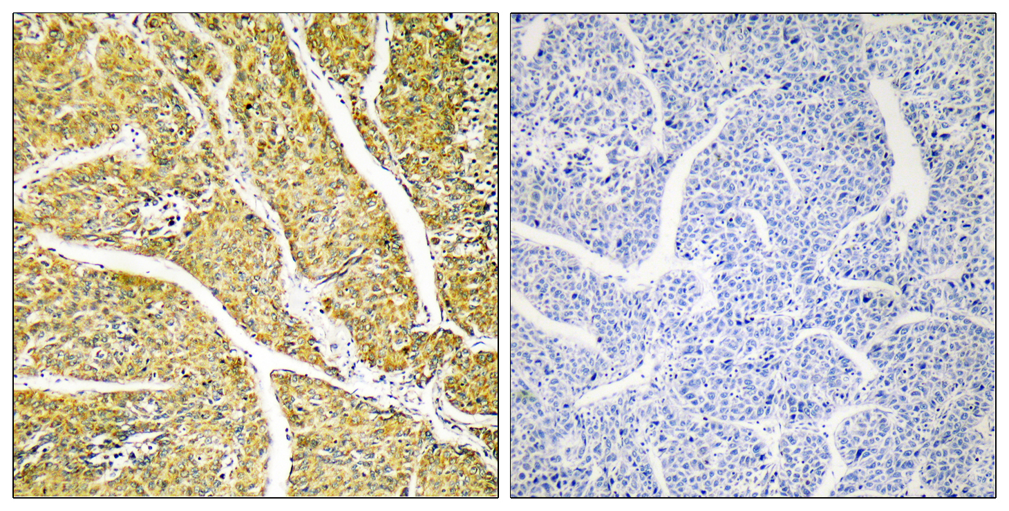- Immunohistochemistryt analysis of paraffin-embedded human liver, using Cytochrome P450 2D6 Antibody. The lane on the right is blocked with the Cytochrome P450 2D6 peptide.