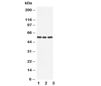 - Western blot testing of CYP2D6 antibody and Lane 1: rat liver; 2: rat kidney; 3: rat brain tissue lysate