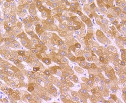 - Immunohistochemistry-Paraffin: Cytochrome P450 2D6 Antibody (JM44-23) [NBP2-67020] - Analysis of paraffin-embedded human liver tissue using anti-Cytochrome P450 2D6 antibody. Counter stained with hematoxylin.