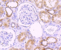- Immunohistochemistry-Paraffin: Cytochrome P450 2D6 Antibody (JM44-23) [NBP2-67020] - Analysis of paraffin-embedded human kidney tissue using anti-Cytochrome P450 2D6 antibody. Counter stained with hematoxylin.