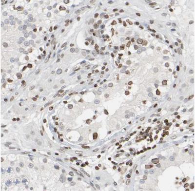 - Immunohistochemistry-Paraffin: PRKAG2 Antibody [NBP1-89324] - Staining of human testis shows moderate to strong positivity in nuclear membrane in cells in seminiferous ducts.