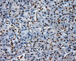 - Immunohistochemical staining of paraffin-embedded pancreas tissue using anti-DAPK2 mouse monoclonal antibody. (GTX84631, Dilution 1:50)