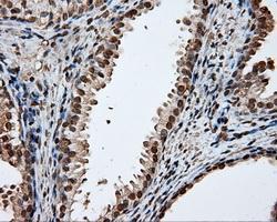 - Immunohistochemical staining of paraffin-embedded prostate tissue using anti-DAPK2 mouse monoclonal antibody. (GTX84631, Dilution 1:50)