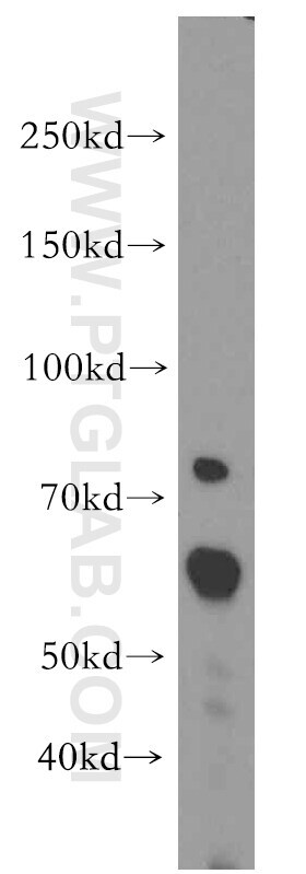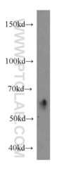 - Human heart tissue were subjected to SDS PAGE followed by western blot with 15006-1-AP (ARIH2 antibody) at dilution of 1:400 incubated at room temperature for 1.5 hours.