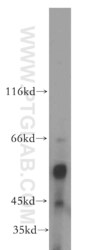 - Mouse kidney tissue were subjected to SDS PAGE followed by western blot with 15006-1-AP (ARIH2 antibody) at dilution of 1:500 incubated at room temperature for 1.5 hours.