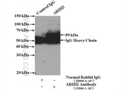 - IP result of anti-ARIH2 (IP:15006-1-AP, 4ug; Detection:15006-1-AP 1:500) with HeLa cells lysate 1200ug.