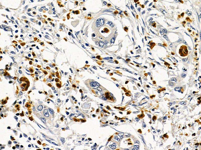 - Immunohistochemistry analysis of ARIH2 in human pancreatic cancer and para-carcinoma tissue. The sample was formaldehyde fixed and a heat mediated antigen retrieval step in citrate buffer was performed. Samples were incubated with ARIH2 polyclonal antibody (Product # PA5-114879) using a dilution of 1:100 (4°C overnight) followed by HRP conjugated anti-Rabbit secondary antibody.