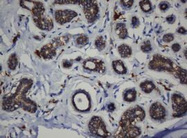 - IHC of paraffin-embedded Human breast tissue using anti-CDH1 mouse monoclonal antibody. (Heat-induced epitope retrieval by 10mM citric buffer, pH6.0, 120°C for 3min).