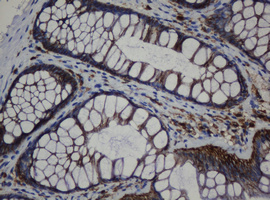 - IHC of paraffin-embedded Human colon tissue using anti-CDH1 mouse monoclonal antibody. (Heat-induced epitope retrieval by 10mM citric buffer, pH6.0, 120°C for 3min).