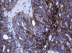 - Immunohistochemical staining of paraffin-embedded Adenocarcinoma of Human ovary tissue using anti-CDH1 mouse monoclonal antibody. (Heat-induced epitope retrieval by 10mM citric buffer, pH6.0, 120°C for 3min, TA800691)