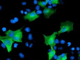 - Anti-CCM2 mouse monoclonal antibody (TA503413) Immunofluorescent staining of COS7 cells transiently transfected by pCMV6-ENTRY CCM2(RC201418).