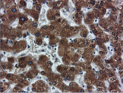 - Immunohistochemistry-Paraffin: FDFT1 Antibody (2F10) [NBP2-01170] - Staining of paraffin-embedded Human liver tissue using anti-FDFT1 mouse monoclonal antibody.