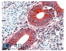 - EPB41L2 antibody staining of paraffin embedded Human Uterus at 2.1 ug/ml. Steamed antigen retrieval with citrate buffer pH 6, AP-staining.