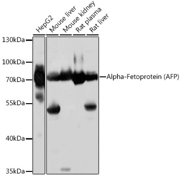 Rabbit polyclonal antibody anti-AFP is suitable for use in Western Blot, Immunofluorescence and Immunoprecipitation.