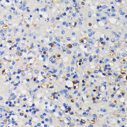 - Immunohistochemistry of paraffin-embedded human spleen using CD11a/LFA-1A/ITGAL rabbit monoclonal antibody (STJ11101547) at dilution of 1:100 (40x lens). Perform microwave antigen retrieval with 10 mM PBS buffer pH 7. 2 before commencing with immunohistochemistry staining protocol.