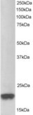 - Antibody staining (1 ug/ml) of Jurkat lysate (RIPA buffer, 30 ug total protein per lane). Primary incubated for 1 hour. Detected by Western blot of chemiluminescence.