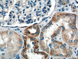- Immunohistochemistry of paraffin-embedded human kidney using 14631-1-AP (AFG3L2 antibody) at dilution of 1:50 (under 40x lens).