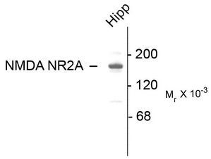- Figure 1. Western blot of 10 µg of rat Hippocampal lysate showing specific immunolabeling of the ~180k NR2A subunit of the NMDA Receptor.