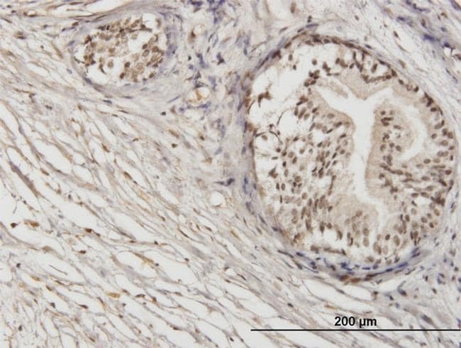 - Immunohistochemical analysis of ZNF92 in formalin-fixed paraffin-embedded human prostate tissue. Samples were probed using a Mouse Monoclonal ZNF92 (1F2) Antibody (Product # MA5-24530) at 1.2 µg/mL.