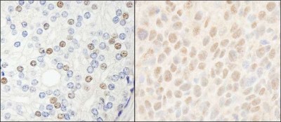- Immunohistochemistry-Paraffin: HDAC7 Antibody [NB100-61587] - Human prostate carcinoma (left) and mouse colon carcinoma (right). Antibody used at a dilution of 1:5,000.
