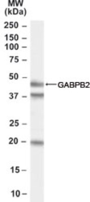 - Western Blot: GABPB1 Antibody [NB100-60948] - Analysis of GABPB1 using this antibody at 0.5 ug/ml in HeLa cell lysate (35ug protein in RIPA buffer).