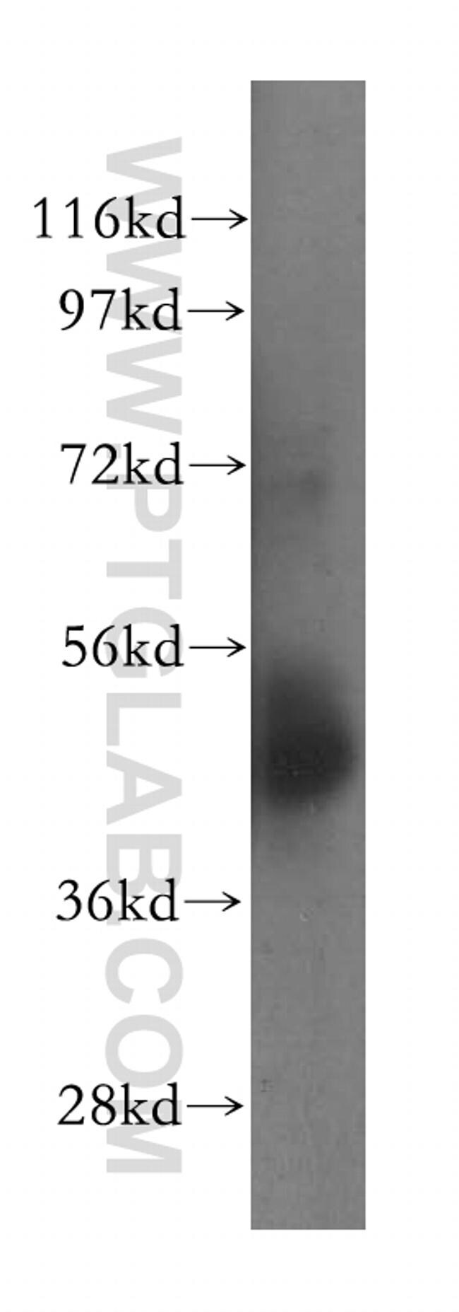 - Human kidney tissue were subjected to SDS PAGE followed by western blot with 15449-1-AP (NSUN5 antibody) at dilution of 1:500 incubated at room temperature for 1.5 hours.