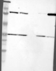 - Western blot analysis of antibody specificity using a routine panel composed of IgG/HSA-depleted human plasma and protein lysates from selected human tissues and cell lines.