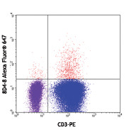 - PMA+ionomycin-stimulated (6 hours) human peripheral blood lymphocytes surface stained with CD3 PE, then intracellular stained with 8D4-8 Alexa Fluor® 647 (top), bottom data shows the 8D4-8 Alexa Fluor® 647 staining can be specifically blocked by pre-incubation with purified 8D4-8 antibody