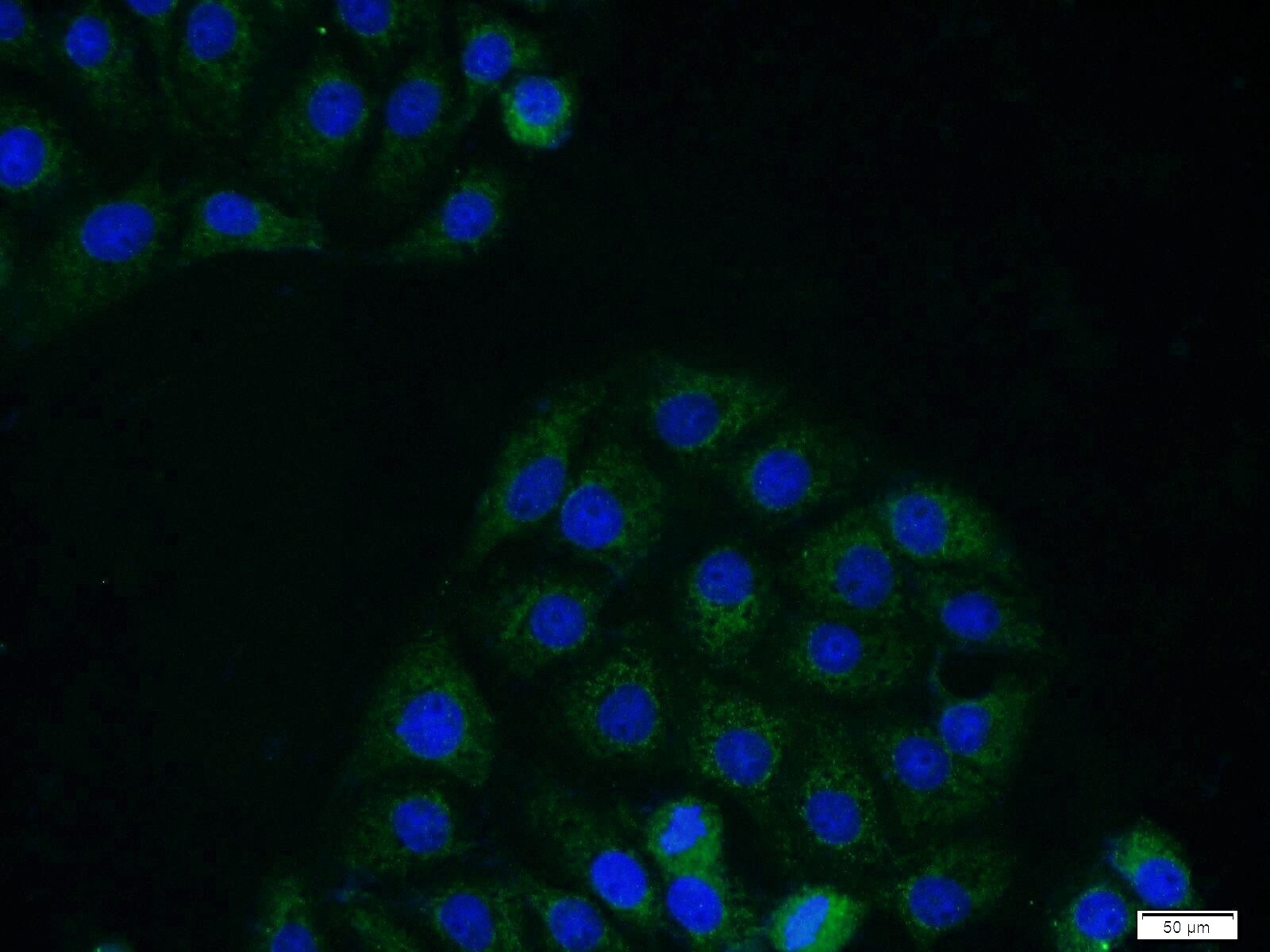 - Immunofluorescent analysis of SH-SY5Y cells using 55014-1-AP (p75NTR antibody) at dilution of 1:25 and Alexa Fluor 488-conjugated AffiniPure Goat Anti-Rabbit IGG (H+L).