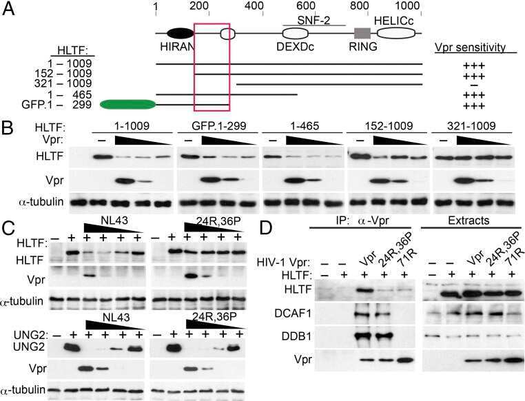 HIV-1 and HIV-2 exhibit divergent interactions with HLTF and UNG2 DNA repair proteins.