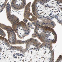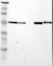 - Western blot analysis of antibody specificity using a routine panel composed of IgG/HSA-depleted human plasma and protein lysates from selected human tissues and cell lines.