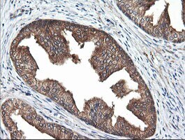 - Immunohistochemical staining of paraffin-embedded human prostate tissue within the normal limits using anti-RAB21 mouse monoclonal antibody. (Heat-induced epitope retrieval by 10mM citric buffer, pH6.0, 120°C for 3min, TA505747)