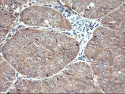- Immunohistochemical staining of paraffin-embedded Adenocarcinoma of Human ovary tissue using anti-RAB21 mouse monoclonal antibody. (Heat-induced epitope retrieval by 10mM citric buffer, pH6.0, 120°C for 3min, TA505747)