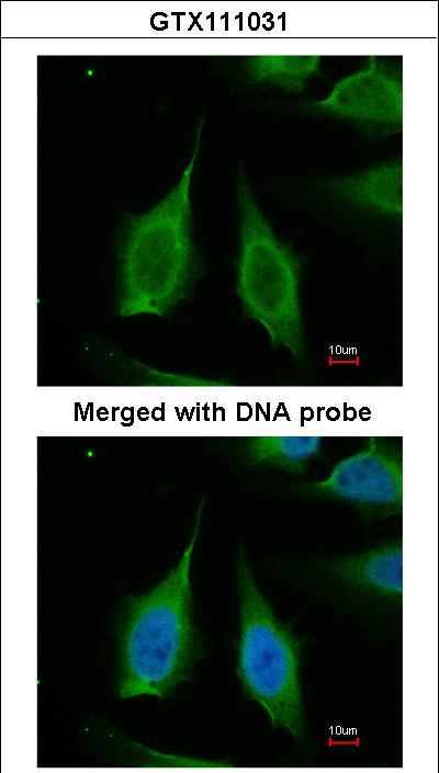 - Immunofluorescence of paraformaldehyde-fixed HeLa using PPA1 antibody at 1:200 dilution.
