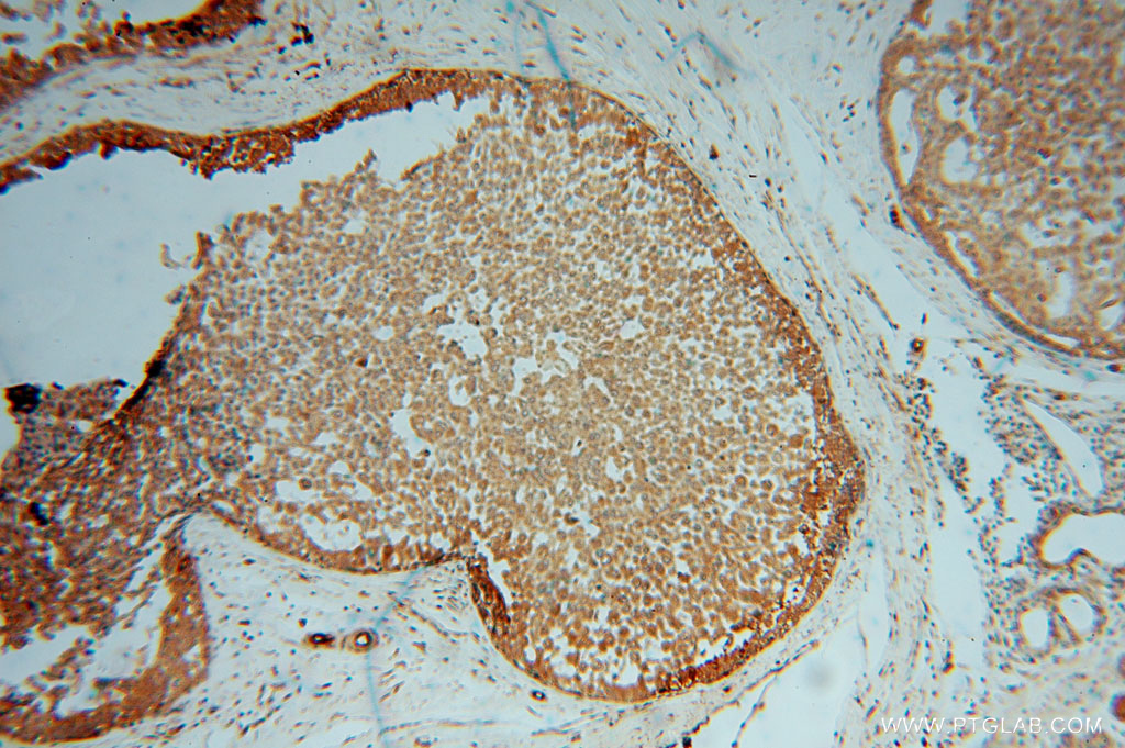 - Immunohistochemical of paraffin-embedded human breast cancer using 14985-1-AP(PPA1 antibody) at dilution of 1:50 (under 10x lens)