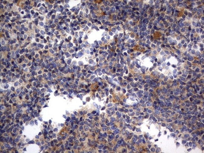 - Immunohistochemical staining of paraffin-embedded human lymphoma tissue using anti-RAPGEF1 mouse monoclonal antibody. (UM500102, heat-induced epitope retrieval by 1 mM EDTA in 10mM Tris, pH8.0, 120°C for 3min)