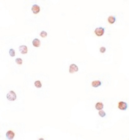 - Immunocytochemistry of APC8 in K562 cells with APC8 antibody at 5 ug/ml.