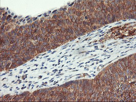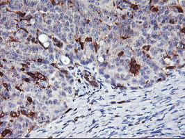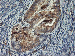 - Immunohistochemical staining of paraffin-embedded Adenocarcinoma of Human endometrium tissue using anti-VASP mouse monoclonal antibody. (Heat-induced epitope retrieval by 10mM citric buffer, pH6.0, 100C for 10min, TA502491)