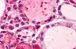 - Immunhistochemistry analysis in human thyroid (Formalin-fixed, Paraffin-embedded) using GPR56 / TM7XN1 antibody Cat.-No. AP31896PU-N (N-term).