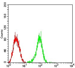 - Flow Cytometry analysis of FCRN in HL-60 cells using FCGRT Monoclonal Antibody (Product # MA5-38519) (green) and negative control (red).
