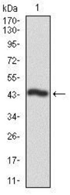 - Western Blot: CKII alpha prime polypeptide Antibody (1E1) [NBP2-37457] - Western blot analysis using CSNK2A2 mAb against human CSNK2A2 recombinant protein. (Expected MW is 44 kDa)