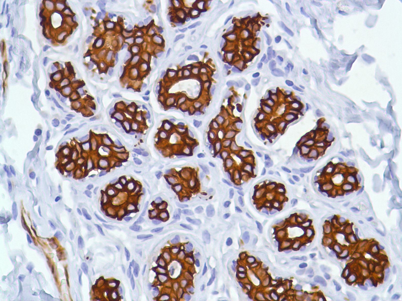 - Immunohistochemistry: Human Breast Ductal Cell Carcinoma stained with Keratin 7 antibody [SP52] (ARG53212)
