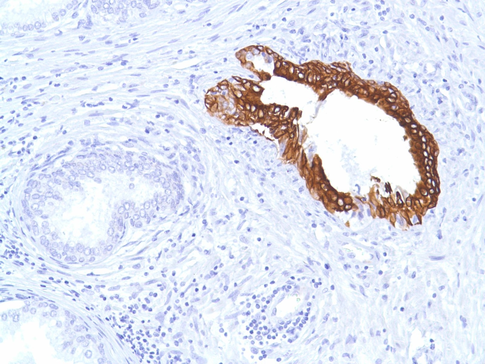 - Immunohistochemistry: Human Prostate Adenocarcinoma stained with Keratin 7 antibody [SP52] (ARG53212)