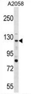 - Western blot analysis in A2058 cell line lysates (35ug/lane) using PTPRN2?antibody .?. This demonstrates the PTPRN2 antibody detected the PTPRN2 protein (arrow).